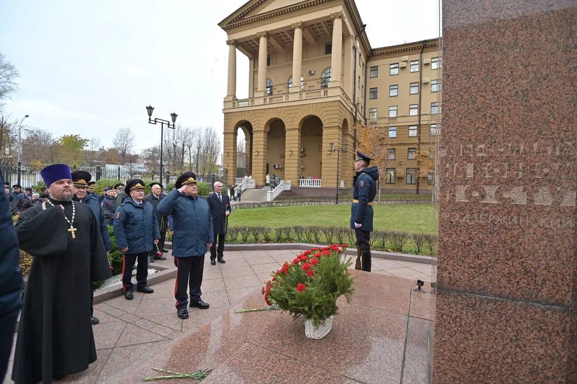 После панихиды прошла церемония возложения цветов к бюсту Ф.Э. Дзержинского и Доске памяти ГУ МВД России по г. Москве в память о героях, которые отдали жизнь в борьбе с преступностью.